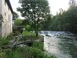 The Andrejka Mill (Slovene: Andrejkatov mlin), also known as the Mevec Mill (Slovene: Mevčev mlin),[4] stands on the Krka River in the northeastern part of the settlement. It dates to the second half of the 18th century.[5] The millstream feeds six troughs that powered separate wheels. The mill operated until 1966.[4]