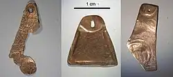 Samples of guanín have been found all over central America, indicating a great deal of trade and interaction between the many cultures that lived in the area.[6][7] Guanín was used to create and decorate a variety of objects, including both humanoid and animal figurines using lost-wax casting, and hammered ceremonial medallions also referred to as guanín.[7] For many years, guanín was one of the most important valuables for long-distance trade in and around central America and the Caribbean basin.[8]