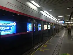 Guangji Nanlu Station (Chinese: 广济南路站) is a station of Line 1 & Line 2 of the Suzhou Metro. The station is located in Gusu District, Suzhou. It began operation on April 28, 2012 with the opening of Line 1. The Line 2 platforms began operation on December 28, 2013 with the opening of Line 2.[1][2][3][4]