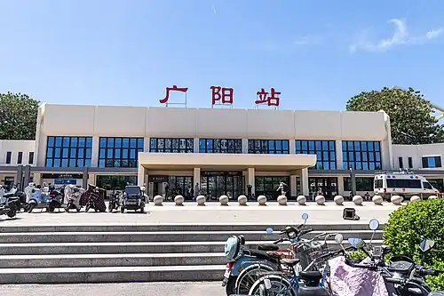Guangyang railway station (Chinese: 广阳站; pinyin: Guǎngyáng zhàn) is a railway station in Guangyang District, Langfang, Hebei.[1] It is served by the conventional Beijing–Shanghai railway and is situated adjacent to Langfang railway station, which is served by high-speed trains. An underground passage links the two.