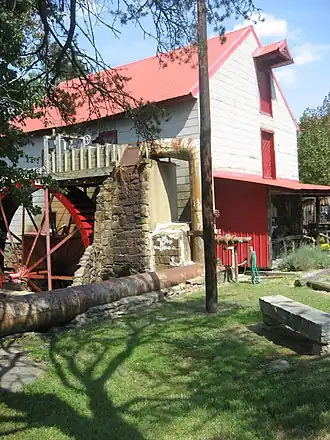 Guilford Mill,[2] also known as the Old Mill of Guilford and Bailes' Old Mill, is a historic grist mill located near Oak Ridge, Guilford County, North Carolina. It was built in 1822, and is a plain three-story, heavy timber frame building on a fieldstone foundation. It has a gable roof and one-story, shed roofed addition built of fieldstone. The grist mill is powered by an overshot wheel.[3]