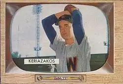 Constantine Nicholas "Gus" Keriazakos (July 28, 1931 – May 4, 1996) was an American professional baseball player. He was a 6 ft 3 in (1.91 m), 187 lb (85 kg) right-handed pitcher who worked in 28 games in the Major Leagues in 1950 and 19541955 for the Chicago White Sox, Washington Senators and Kansas City Athletics.