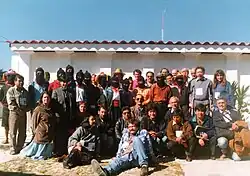 Héctor Díaz-Polanco with academics and researchers, alongside members of the Zapatista Army of National Liberation.