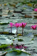 Between 1944 and 1946 the buildings were used as a hospital, first by the German then by the Soviet army. In 1948 it fell under state ownership; the State Medicinal Bath, Hévíz, was established by the Ministry of Health on 1 January 1952. The number of visitors tripled then quadrupled, and the machinery of the hospital and the treatments were modernised. On 3 March 1986, the central buildings of the bath (in the lake) burnt down.[1] In September 1989 the reconstruction of the destroyed parts was completed.