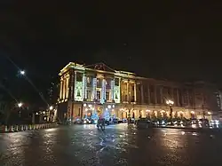 The building that is now the hotel was constructed in 1758, after King Louis XV commissioned the most prolific architect Ange-Jacques Gabriel to build two neoclassical palaces[5] in what would become the Place de la Concorde. The two identical buildings, separated by the Rue Royale, were initially designed to be offices of the French state. The eastern building, Hôtel de la Marine, housed the headquarters of the French Navy until 2015.[6] The western building that would become Hôtel de Crillon was first occupied by Louis Marie Augustin, Duke of Aumont, a famous patron of the arts. The building was further enhanced by its second owner, the architect Louis-François Trouard, who had the Salon de Aigles built in 1775.[7]