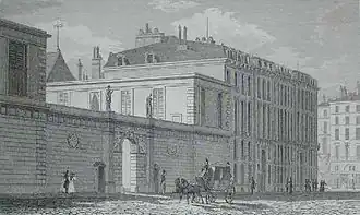Confiscated as a bien national ("national property") during the French Revolution, the Hôtel de Toulouse became the Imprimerie de la République in 1795. An imperial decree signed by Napoleon I on 6 March 1808, authorised the sale of the Hôtel de Toulouse to the Banque de France, which made it its official seat in 1811.[3]