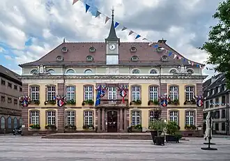 Meetings of the aldermen were held in the Citadelle de Belfort (Belfort Castle) until the end of the 16th century.[2][3] They relocated to a building referred to as the Ancien Hôtel de Ville (old town hall) near the Porte de Brisach (Brisach Gate) in 1602.[4][5]