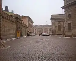 Högvaktsterrassen in March 2007. The Royal Palace to the right and the Riksdag in the background.