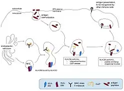 - ^ a b c d e f g Mellins ED, Stern LJ (February 2014). "HLA-DM and HLA-DO, key regulators of MHC-II processing and presentation". Current Opinion in Immunology. 26: 115–22. doi:10.1016/j.coi.2013.11.005. PMC 3944065. PMID 24463216.