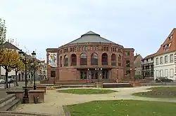 French Baroque and classicism has bequeathed the town several buildings, among which the former hospital and the current town hall. The Synagogue (1820) is a fine example of French Neo-classicism, as is the theatre (Théâtre municipal) (1846). The large Hop hall (Halle au houblon) is a good example of historicism in architecture. It was built by the French in 1867 and extended twice by the Germans, in 1881 and 1908.