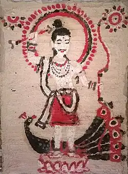 The Hajongs believe in some evil spirits like Machang Dyao, Jarang Dyao, Bhut, Muilâ Dyao, Jugni Dyao, Daini etc. They adore and worship different gods and goddess like Kali, Durga, Lakshmi, Saraswati, Kamakhya, Manasa, Basanti and others. They also practice some of their traditional religious rituals. Kartik puja among the Hajongs are known as Kâtkâ pujâ and Manasa puja is known as Kani Dyao puja. The day of Lakshmi puja is referred to as 'Kujâi Ghor' .[5] In Bastu Pujâ tortoises and pigeons are sacrificed for Bastu.[6]