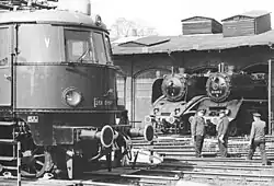 1. ^ Since 1946 catenaries and overhead line masts were dismantled as Soviet war reparations.