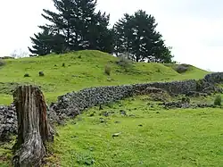Hampton Park is one of the volcanoes in the Auckland volcanic field. A small scoria cone reaching 35 metres (114 ft 10 in) above sea level, with a shallow crater around 50 metres (164 ft 1 in) wide, which has been modified by quarrying.[1] The scoria cone sits in the centre of a much larger explosion crater, the eastern arc of the surrounding tuff ring is still present. Stone from the volcano was used to build dry-stone walls and the nearby St John's Church built on the tuff ring crest.