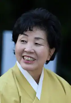 Han Bok-ryeo (Korean한복려; Hanja韓福麗; born May 13, 1947) is a South Korean researcher of Korean royal court cuisine. She was born in 1947, the oldest daughter of Hwang Hye-seong, also a researcher of Korean royal court cuisine. She studied for her master's of Horticulture at The University of Seoul and Food Engineering at Korea University, and she got her doctorate in Food and Nutrition at Myongji University. She follows after her mother who made an effort to systematize Korean royal court cuisine, so she contributes to its reproduction and modernization. For her success in these efforts, she won the official commendation of the Minister of Culture. She was engaged in developing menus and providing support at the Inter-Korean summit in 2000; she also was the consultant for the dishes served in Korean soap opera Dae Jang Geum. She is now the director of the Institute of Korean Royal Cuisine and is running two Korean restaurants named 'Jihwaja' (지화자), and 'Gungyeon' (궁연). She was registered as "important cultural property No.38: Korean royal court cuisine artisan."