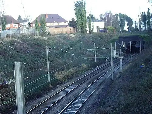 Handsworth Wood railway station was a railway station in Handsworth Wood, Birmingham, England. It was found on the London and North Western Railway link between the Chase Line and the West Coast Main Line. The station operated between 1896 and 1941, and like neighbouring station Soho Road, closed during the Second World War,[1] as a result of decreasing use by passengers who possibly found the new 16 bus route more convenient.