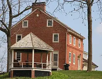 Hard Lodging is a historic home located at Union Bridge, Carroll County, Maryland, United States. It is built on a small cliff overlooking the site where its first owner, Solomon Shepherd, had a mill that is no longer standing. The house was built in three stages: the middle section, a 2+12-story brick structure, was probably built first; the main section of the house is attached to the west and is a Federal-style, three-by-two-bay, 2+12-story house with an interior gable-end chimney.[2] Hard Lodging is currently a private residence and is no longer owned by the Historical Society. The home is an example of Pennsylvania German architecture.