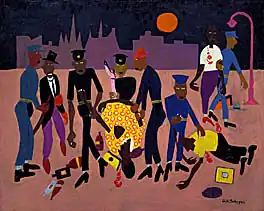William Johnson depicted the riot in his c. 1943–1944 painting Moon Over Harlem.