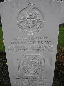 Wells was 27 years old, and a sergeant in the 2nd Battalion, The Royal Sussex Regiment, British Army during the First World War when the following deed took place for which he was awarded the VC.