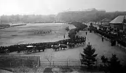 In the late 19th and early 20th centuries, baseball games between Harvard and Yale attracted much attention. At the end of each season, the teams played two games, one each in Cambridge and New Haven; if the teams split these games, a third was scheduled to decide that year's champion.[79] In 1913, for example, when Yale won 2–0 in New Haven and Harvard won 4–3 in Cambridge, a third game was scheduled at Ebbets Field, the home field of Major League Baseball's Brooklyn Dodgers; Harvard won, 6–5.[80] The games regularly drew crowds of over 10,000. The 1913 championship game at Ebbets saw an attendance mark of 15,000; a June 23, 1908, game (which Harvard lost 3–0) was attended by 14,000 spectators, including Secretary of War William Howard Taft, a Yale alumnus who had unofficially been named the Republican nominee for president only days earlier.[81][82]