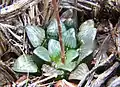 A western form, inhabiting shale rocks near Oudtshoorn, is sometimes considered a separate species, Haworthia truteriorum. It is smaller, dull-green, with silver lines or flecks on its leaves, which have more strongly toothed margins.[2]