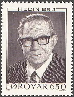 Heðin Brú (pronounced [ˈhejɪn bɹʉu]; August 17, 1901 – May 18, 1987) was the pen-name of Hans Jacob Jacobsen, a Faroese novelist and translator.