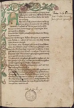 - ^ Elizabeth Ilona Wade, "History and fortune in Heinrich Steinhoewel's Appolonius", University of Illinois at Urbana-Champaign, 1995