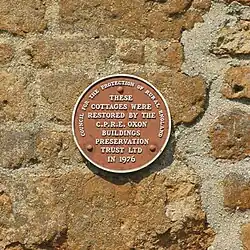 Plaque between Turret Thatch and Middle Corner Cottage commemorating their restoration in 1976