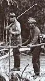 Lorentz (left) with a porter crossing the river Ingsim, 1903 Wichmann New Guinea expedition