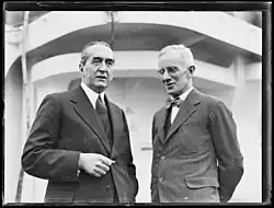 In October 1934, Gullett was re-appointed to the ministry as a minister without portfolio with responsibility for trade treaties.[1] In early 1935, he presented a draft trade treaty with Japan to cabinet.[18] He travelled to England with his wife later that year to attend the Silver Jubilee of King George V, and to discuss trade with representatives of Britain and the other Dominions.[19] In 1936, Gullett continued his work on the proposed trade deal with Japan, which was tentatively titled the Treaty of Friendship, Commerce and Navigation. However, negotiations broke down and a trade war commenced over the Lyons government's Trade Diversion Policy, with Australia increasing duties on Japanese clothing and artworks and Japan doing likewise on Australian agricultural products.[20] Jay Pierrepont Moffat, the U.S. Consul in Sydney, observed in his diaries that Gullett "looked ill and tired" and was "constantly leaving his desk and taking some medicine at a cupboard in the corner". His health forced a second retirement from the ministry in March 1937. However, Moffat believed that his resignation was actually due to a disagreement on trade policy.[21]