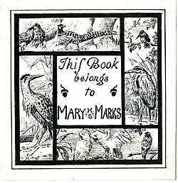 A bookplate made by Marks for his wife, Mary, that demonstrates his love of drawing birds.