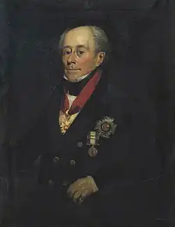 In 1807 Bayntun participated in the naval aspects of the failed invasion of Argentina, but escaped the condemnation received by other of the officers involved.[4] He continued in service, taking command of the 74-gun HMS Milford in 1809, and commanding the royal yacht HMY Royal Sovereign from 1811 until his promotion to rear-admiral of the blue on 12 August 1812.[5] With the defeat of Napoleon and his exile to Elba, Bayntun was made a Knight Commander of the Order of the Bath in January 1815.[6]