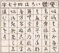 In the Japanese writing system, hentaigana (変体仮名, 変体がな; Japanese pronunciation: [hentaiɡana] or [hentaꜜiɡana], lit. "variant kana")[a] are variant forms of hiragana.[2]