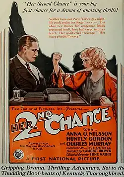 Her Second Chance is a 1926 American silent romantic drama film directed by Lambert Hillyer and starring Anna Q. Nilsson. It was produced by Vitagraph Company of America and distributed through First National Pictures.[1][2]