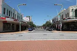 The location where the road intersects with the railway line has for generations been regarded as the centrepiece of Hastings. It is here where the Hastings Clock Tower was built after the 1931 Hawke's Bay earthquake, and the short pedestrian mall is located here.[1] The clock tower is registered as a Category I heritage building with Heritage New Zealand.[2] A night market is held on Thursdays in the mall, organised by the Hastings City Business Association.[3]