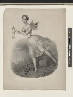 Hermine Blangy was born between 1818 and 1820, probably in Paris.[1][2] Between 1832 and 1841 she was contracted to the Paris Opéra, and in 1840 she danced the title role of La Sylphide there.[3][2] She was also prima ballerina for the Hofoper in Vienna, and danced on tour in the USA, where she was considered to have introduced Romantic ballet to American audiences.[2] Blangy's first appearance in America was at Niblo's Garden in July 1846, as Calista in Vengeance of Diana.[4] Noah Miller Ludlow reports that "this artist gave unqualified satisfaction in all of her performances, and was unquestionably a fine pantomimist as well as dancer."[4]