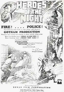 Heroes of the Night is a 1927 American silent drama film directed by Frank O'Connor and starring Cullen Landis. It was produced by Gotham Pictures and released by Lumas Film Corporation.[1]