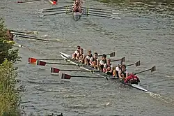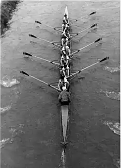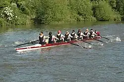 Hertford has a strong rowing history,[1] and this is reflected by the active role that the boat club society plays in the running of the club. Open to anyone with an interest or connection with Hertford rowing, the society is a growing organisation.[12] The highlight of the year is the AGM. This is followed by the annual Society boat race, pitting past rowers against the current 1st VIII's, and then a formal dinner in Hall. Society members also receive the "Blades" magazine.[13] This is published several times a year and keeps society members up to date with the recent fortunes of the club.