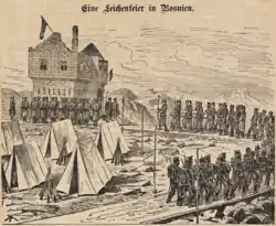 Trouble begain with the Congress of Berlin, solving the so-called Great Eastern Crisis.[1] After a short campaign, the Austro-Hungarian army occupied Bosnia and Herzegovina, a former territory of the Ottoman Empire. This caused resentment among the ethnically and religiously mixed population. The situation escalated at the beginning of 1882. The main reason for the uprising was the unresolved agrarian issue, taxes and the military duty imposed on the local population. It was officially decided that the population of the most recently acquired territory of the Habsburg Monarchy should also serve in its army. This outraged locals, since Bosnia still formally belonged to the Ottoman Empire and only the Sultan could make such a decision. The Bosniaks reacted by massively migrating to Turkish territories (especially to Sandžak), the Serbs initially protested, which led to an armed uprising around the city of Foča.