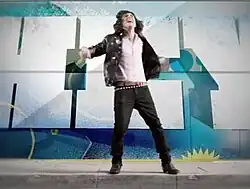 Mitchel Musso in the music video for a tiebreaker of "Hey" in his Hypnosis Standard.