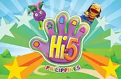 Hi-5 Philippines is the Filipino version of the Australian children's edutainment series of the same title as the first franchise in Asia. Hi-5 Philippines had its first season aired on TV5 from June 15 to August 14, 2015 and second season aired from February 22 to April 29, 2016. The series mostly adapted the original version's Season 11-13.