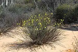 Hibbertia conspicua, commonly known as leafless hibbertia,[2] is a shrub in the Dilleniaceae family and is endemic to Western Australia. It is an erect, leafless shrub that typically grows to a height of 0.2–0.6 m (7.9 in – 1 ft 11.6 in). It has yellow flowers between September and January and is found in the Avon Wheatbelt, Carnarvon, Coolgardie, Geraldton Sandplains and Yalgoo biogeographic regions of Western Australia.[2]