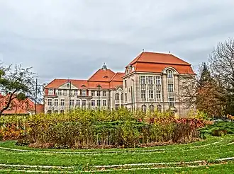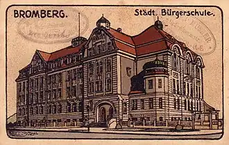 The main building has a L shape, with its main facade giving onto Staszica street. The edifice displays late Eclectic features and is registered since 1992 on the Kuyavian-Pomeranian Voivodeship heritage list.[17] It is often associated with the neighbouring Copernicanum building, erected a few years earlier (1905-1906), also focused on pedagogical purposes.