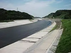 In the 1990s works commenced on a vast flood control system, including the construction of a discharge channel connecting Hii and Kando rivers. It diverts the excess water through Kando river into the Taisha Bay[7][13] Since then the Kando river is regarded as a part of Hii river system.[3][10] The channel, completed in 2013, received the 2014 Outstanding Civil Engineering Achievement Award.[30] Additional elements of the flood control system are the Obara dam on Hii river and the Shitsumi dam on Kando river, as well as renovation of the Ohashi river.[7]