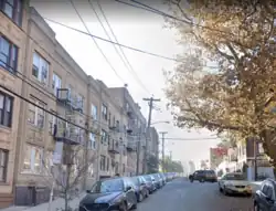 The northern part of Hilltop is located to the east of Five Corners. The neighborhoods borders are created by other excavations, namely Bergen Arches, the Long Dock Tunnel, and The Depressed Highway. Soon after passing the Hudson County Courthouse, Newark Avenue begins its descent. Rising above the avenue at the beginning of Palisade Avenue is the historic landmark Jersey City High School. Designed by John T. Rowland (who also designed the Jersey City Medical Center and the Labor Bank Building), it was later renamed for William L. Dickinson, the Superintendent of Schools from 1872 until his death on November 3, 1883. Newark Avenue separates the school grounds from Jersey City and Harsimus Cemetery, originally developed in the mid 19th century. Across Palisade is the 1942 Hudson Gardens Housing Project.[4] Behind the complex is Washburn Avenue, named for Richard Charles Washburn, a member of the New Jersey General Assembly. St Joseph's Church, built in 1873, is home to the old Catholic parish in the city.[5]
