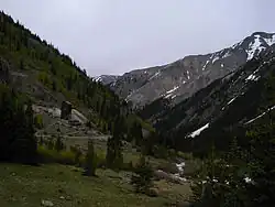 Hinsdale County is one of the most remote counties in Colorado and the United States. The county is covered by mountains, including multiple fourteeners, and contains one of the largest roadless areas in the country.[5][6] The continental divide crosses the county twice. Most of the county is divided among several different national forests and the Weminuche Wilderness area.
