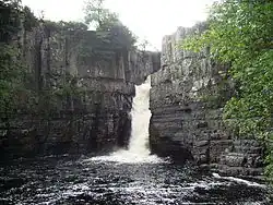 The historic boundaries of County Durham included a main body covering the catchment of the Pennines in the west, the River Tees in the south, the North Sea in the east and the Rivers Tyne and Derwent in the north.[18][19] The county palatinate also had a number of liberties: the Bedlingtonshire, Islandshire[20] and Norhamshire[21] exclaves within Northumberland, and the Craikshire exclave within the North Riding of Yorkshire. In 1831 the county covered an area of 679,530 acres (2,750.0 km2)[22] and had a population of 253,910.[23] These exclaves were included as part of the county for parliamentary electoral purposes until 1832, and for judicial and local-government purposes until the coming into force of the Counties (Detached Parts) Act 1844, which merged most remaining exclaves with their surrounding county. The boundaries of the county proper remained in use for administrative and ceremonial purposes until the Local Government Act 1972.