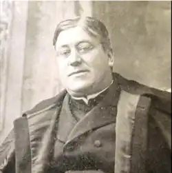 The crowd included many of the leading citizens of Dedham[4] as well as 30 priests.[32][34] The clergy included Johnson, St. Mary's pastor, Father Theodore Metcalf of the Cathedral of the Holy Cross who served as Master of Ceremonies,[i] and Father Joseph Henning of Roxbury who gave a homily.[32] The Cathedral choir sang and Higgins's band provided music,[32] as did the united choirs of Dedham.[34]