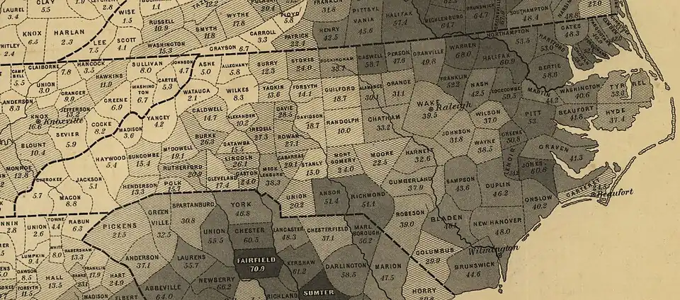 • 1860, the North Carolina General Assembly had a higher percentage (85) of politicians owning slaves than any statehouse in the country.[18]