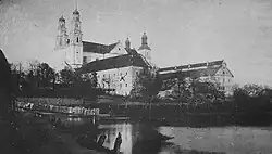 Following the Partitions of Poland, the town was annexed by Russia. In 1812, Napoleon stayed at the Discalced Carmelites monastery for several days.[6] The Tsarist authorities closed the monastery of the Discalced Carmelites, and handed it over to the Orthodox church as part of Russification policies.[6] Part of the library was looted, and part was donated to a museum in Vilnius.[6]