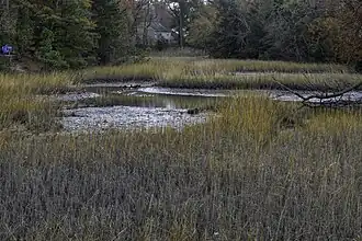 Normally a tranquil salt marsh, the estuary can change dramatically with tide, wind and rain. In 2003, Hurricane Isabel caused significant flooding into yards abutting the creek. Less dramatic flooding occurs with Nor'easter storms, which often last several days.